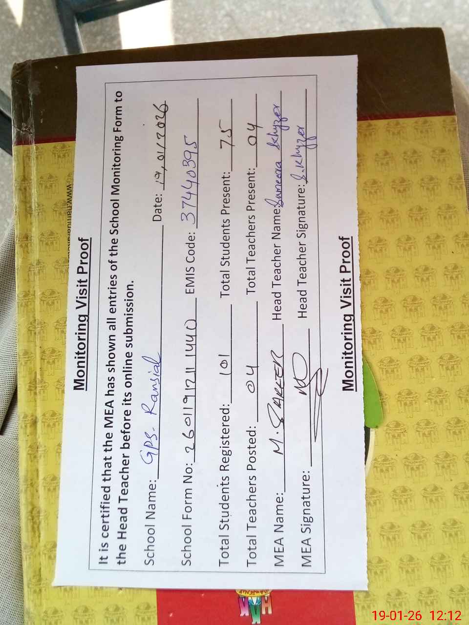 | EMIS Code: 37440395 | Name of School: GPS RANSIAL | |||