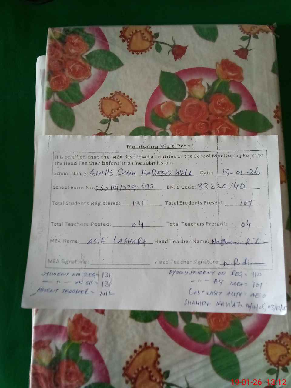 | EMIS Code: 33220740 | Name of School: GMPS CHAH FAREED WALA | |||