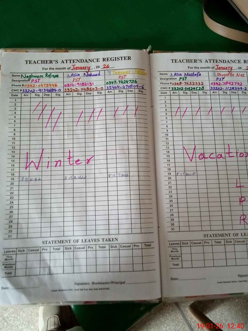 | Name: NA**** RA**** Designation: (School Headmaster's/Headmistress's) PST Phone/Cell Number: 03**** |