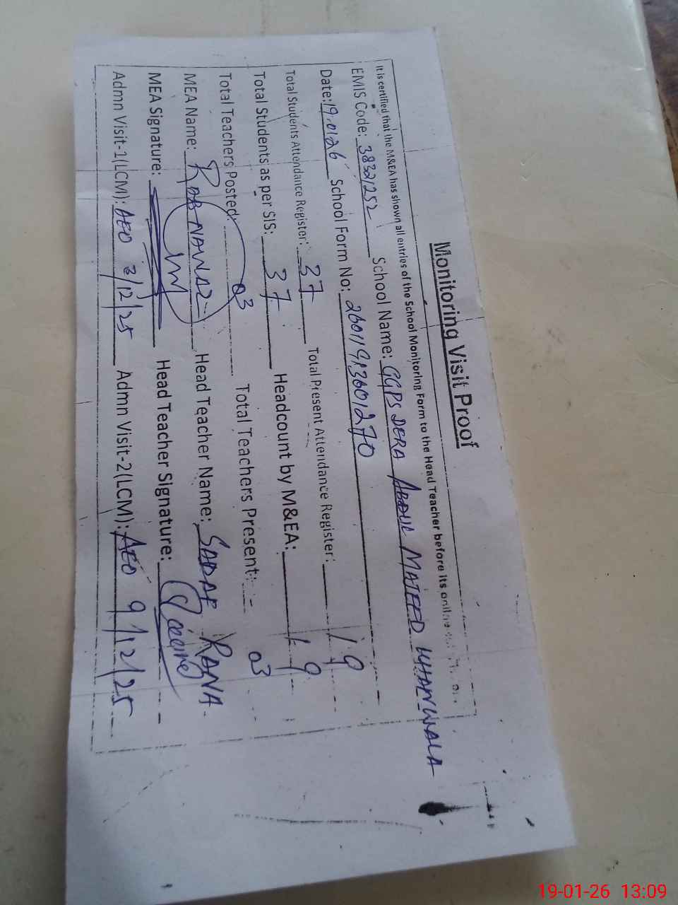| EMIS Code: 38321252 | Name of School: GGPS DERA ABDUL MAJEED KHAN WALA | |||