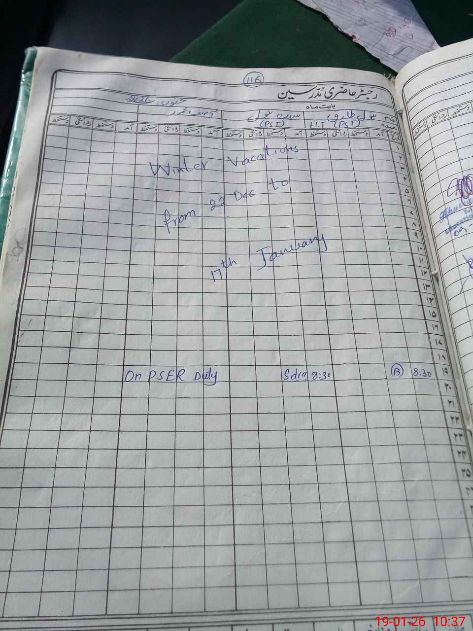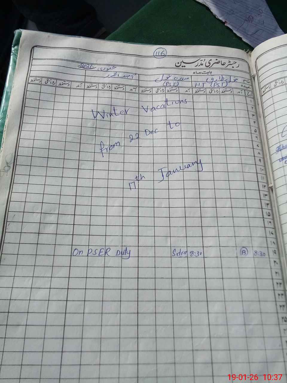 | Leave | Duty | Absent | Maternity | Medical | Ex- Pak |