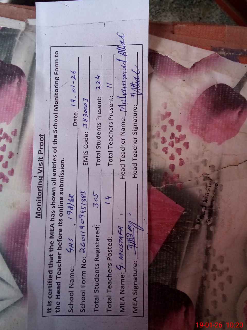 | EMIS Code: 31130003 | Name of School: GHS CHAK 199/8R | |||