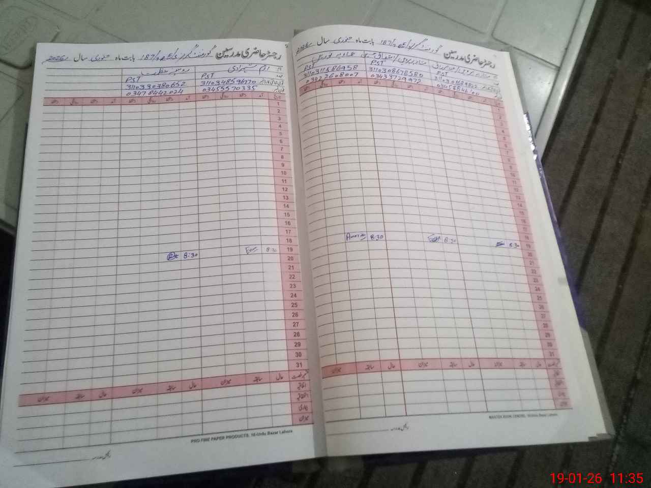 | CNIC | Full Name | Designation | R/C | Absence During Last Calender Month |