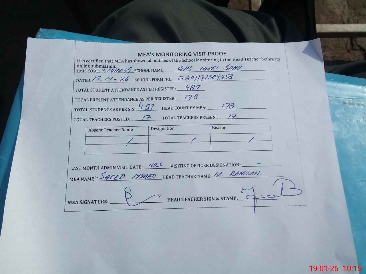 | EMIS Code: 36410049 | Name of School: GHS MARI SAHU, KABIRWALA | |||