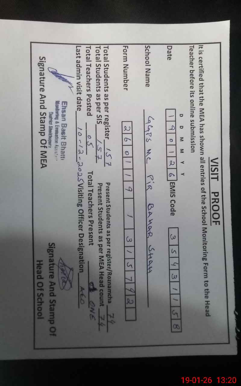 | EMIS Code: 35431158 | Name of School: GGPS MC PIR BAHAR SHAH | |||