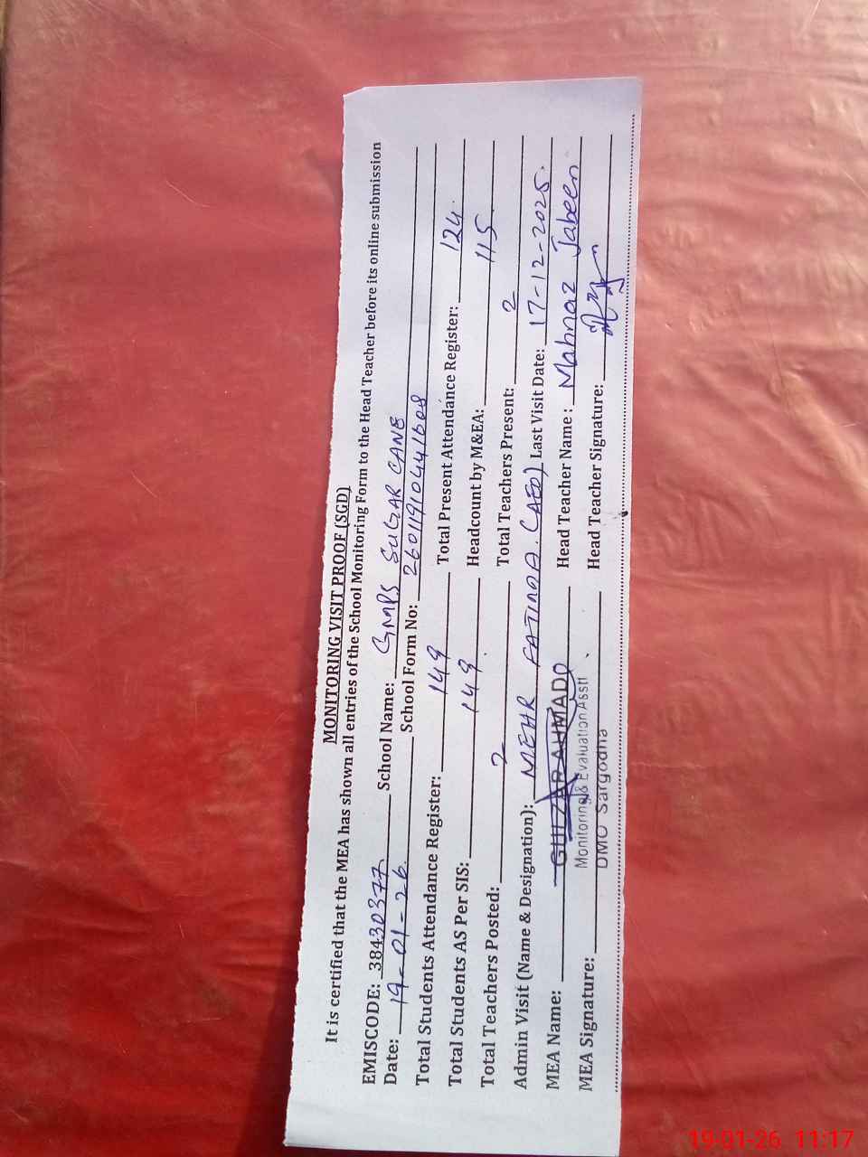 | EMIS Code: 38430377 | Name of School: GMPS SUGAR CANE | |||