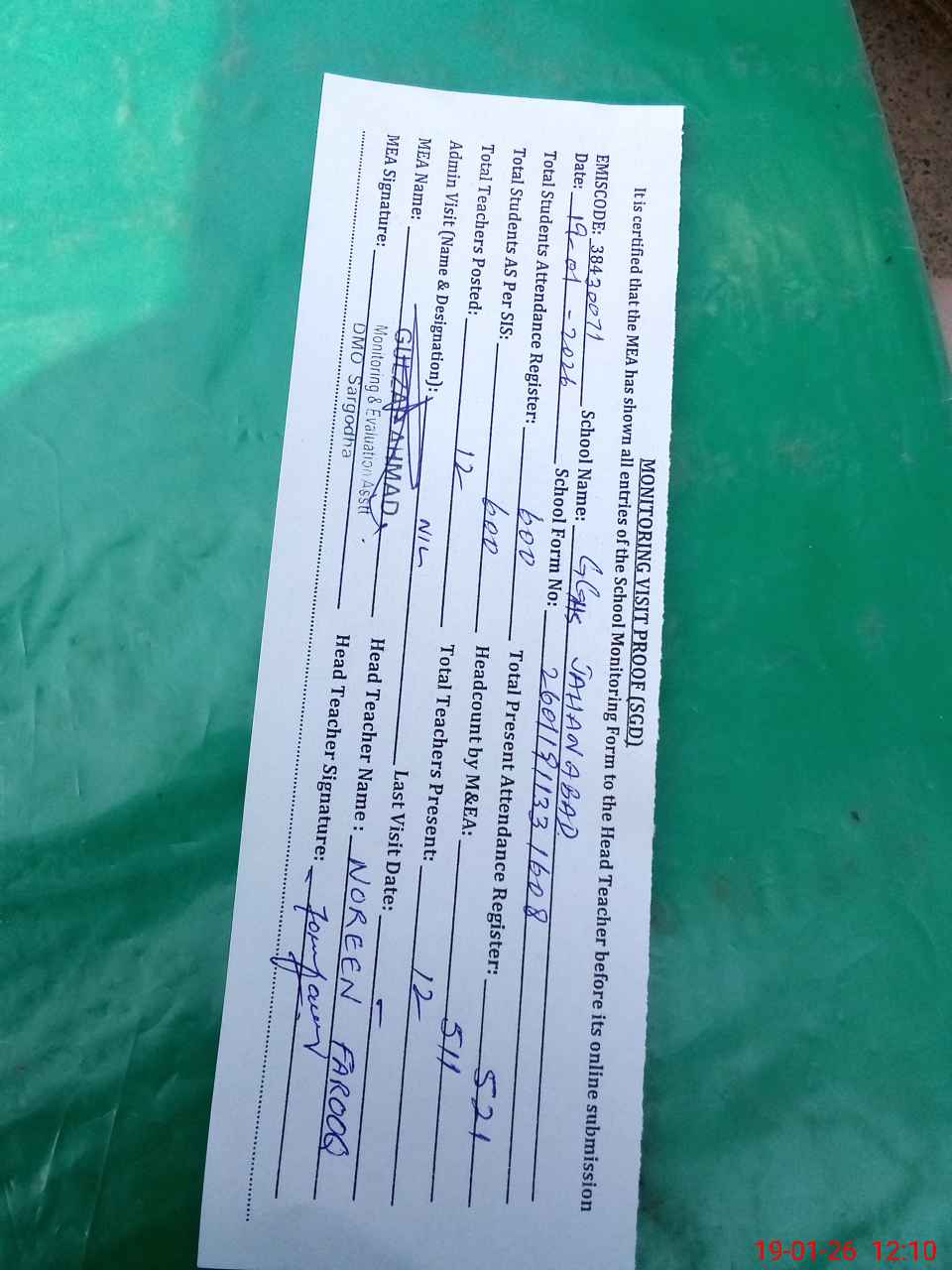 | EMIS Code: 38430071 | Name of School: GGHS JAHANABAD | |||