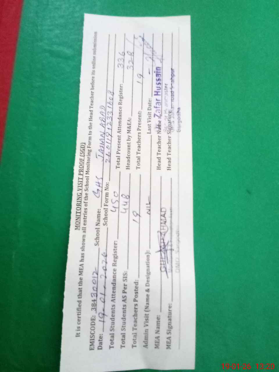 | EMIS Code: 38430012 | Name of School: GHS JAHANABAD | |||