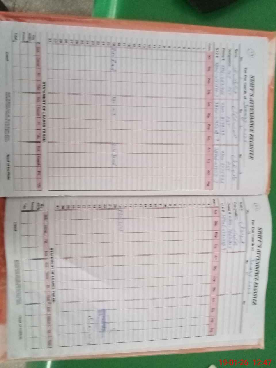 | CNIC | Full Name | Designation | R/C | Absence During Last Calender Month |