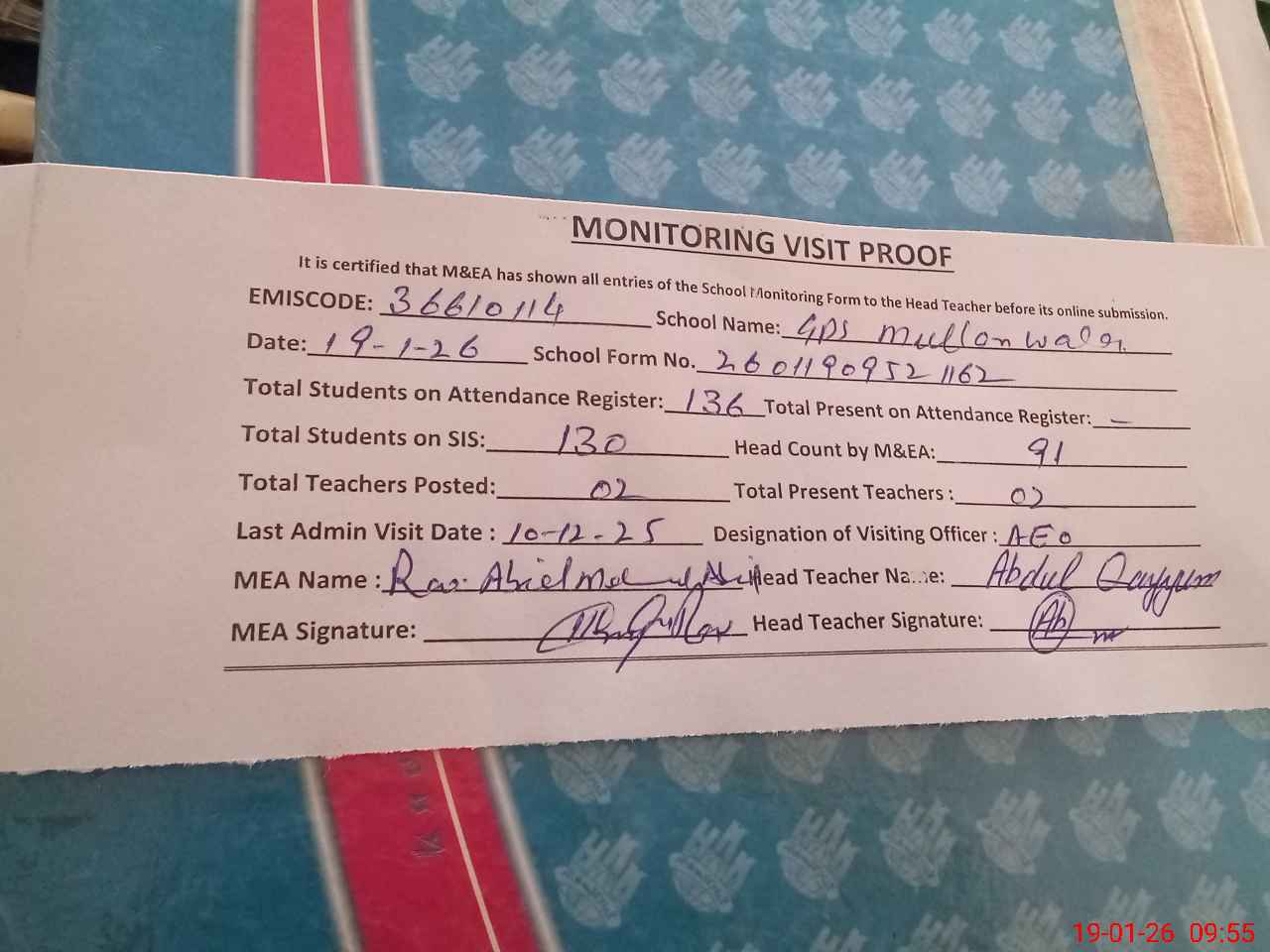 | EMIS Code: 36610114 | Name of School: GPS MULLAN WALA JALALABAD | |||
