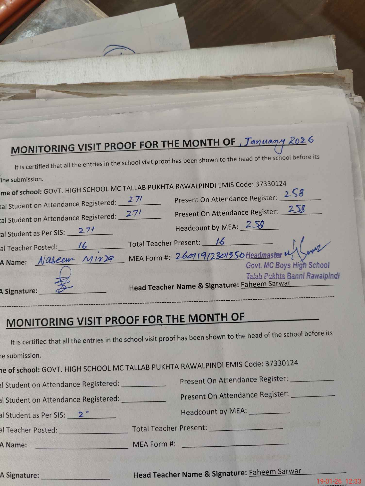 | EMIS Code: 37330124 | Name of School: GHS MC TALLAB PUKHTA | |||