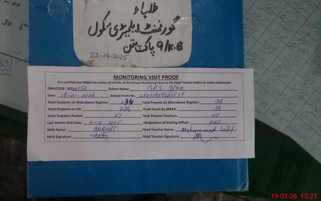 | EMIS Code: 39210150 | Name of School: GES 9 KB | |||