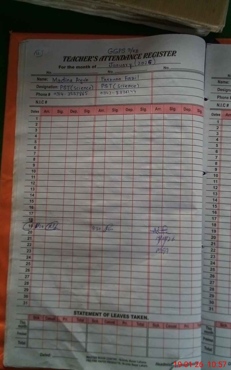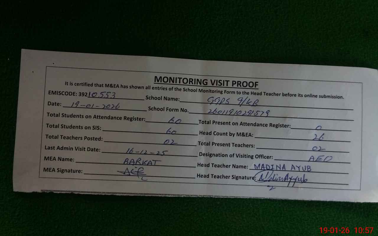 | Remarks (Use Separate Page if Required): NSB and FTF record uncomplet books are not issued to this school No attendance Mark at register from KG to 5 class | |||||