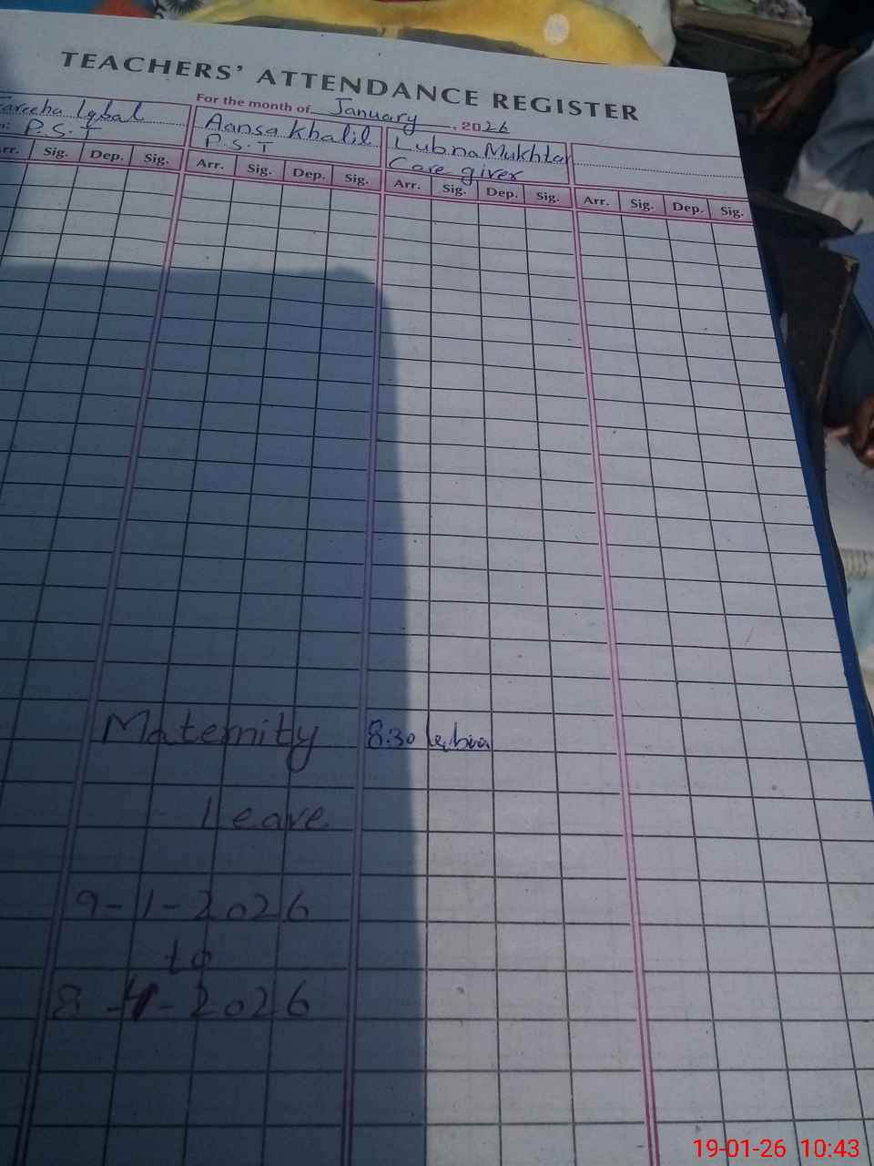 | 33**** | Aa**** Kh**** | PST Science/Maths | Regular | 0 | 0 | 0 | 0 | 0 | 0 | 0 | 0 | 0 | Absent (Un-Authorized) |