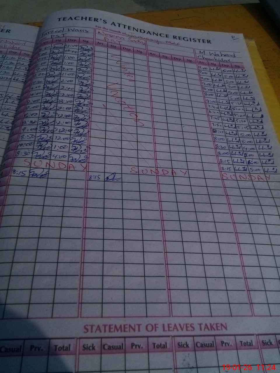 | Leave | Duty | Absent | Maternity | Medical | Ex- Pak |