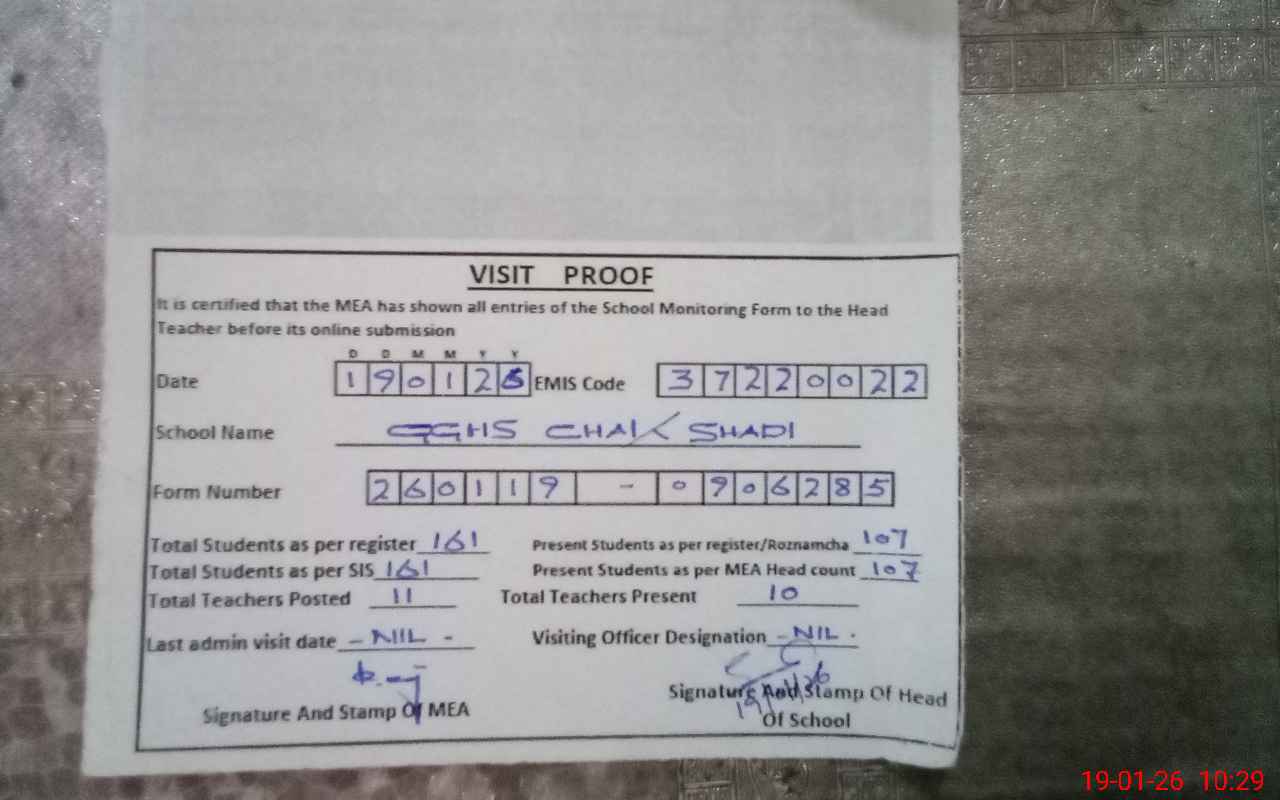 | EMIS Code: 37220022 | Name of School: GGHS CHAK SHADI | |||