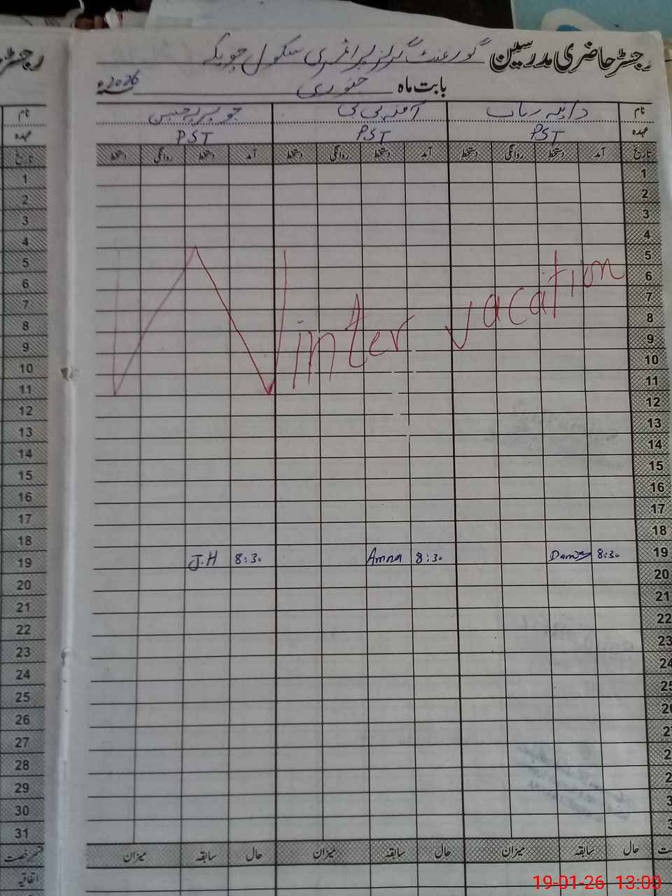 | No. of Students Present - Male | 0 | 0 | 0 | 3 | 0 | 2 | 1 | 13 | ||||||||