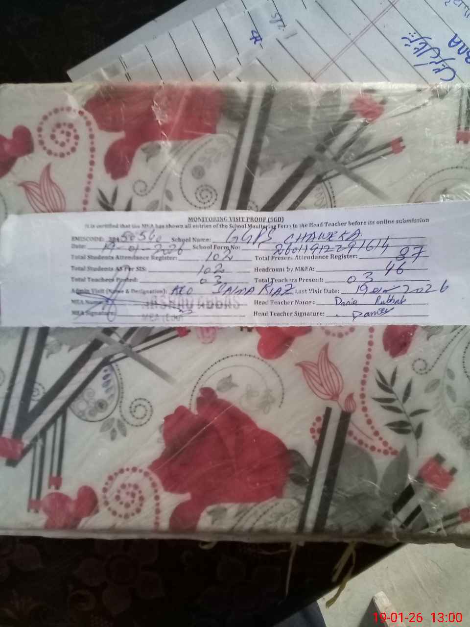 | Attendance Register | Head Teacher | MEA with School | Visit Proof |