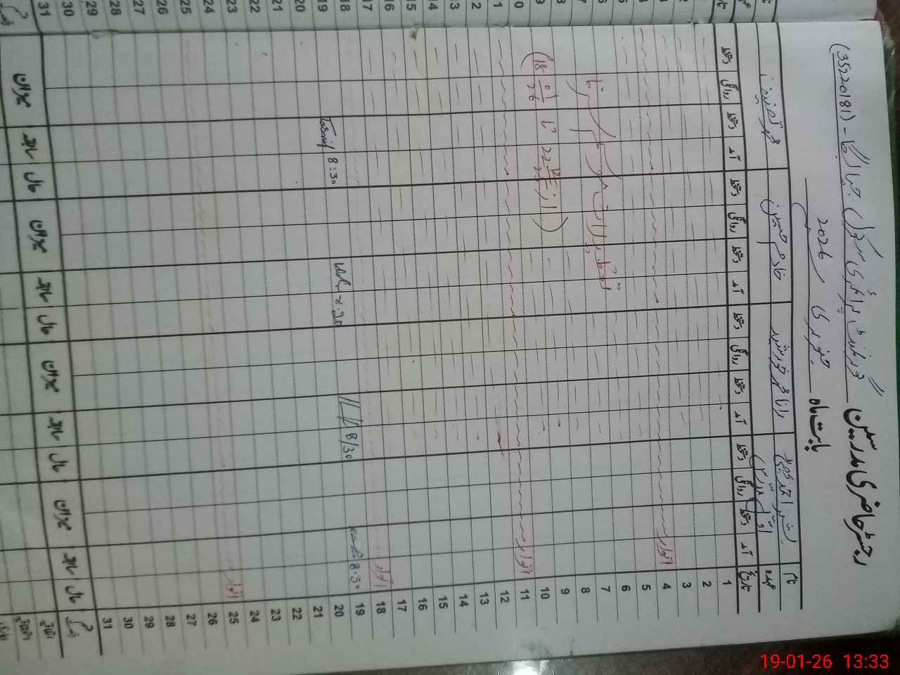 | CNIC | Full Name | Designation | R/C | Absence During Last Calender Month |