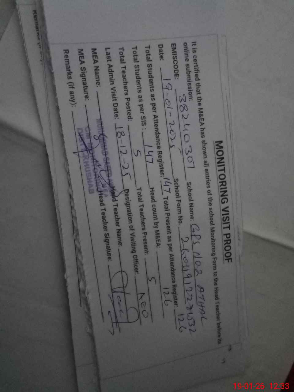 | Remarks (Use Separate Page if Required): Students on SIS Qty 147 Last admin visit On 18 December 2025 by AEO | |||||