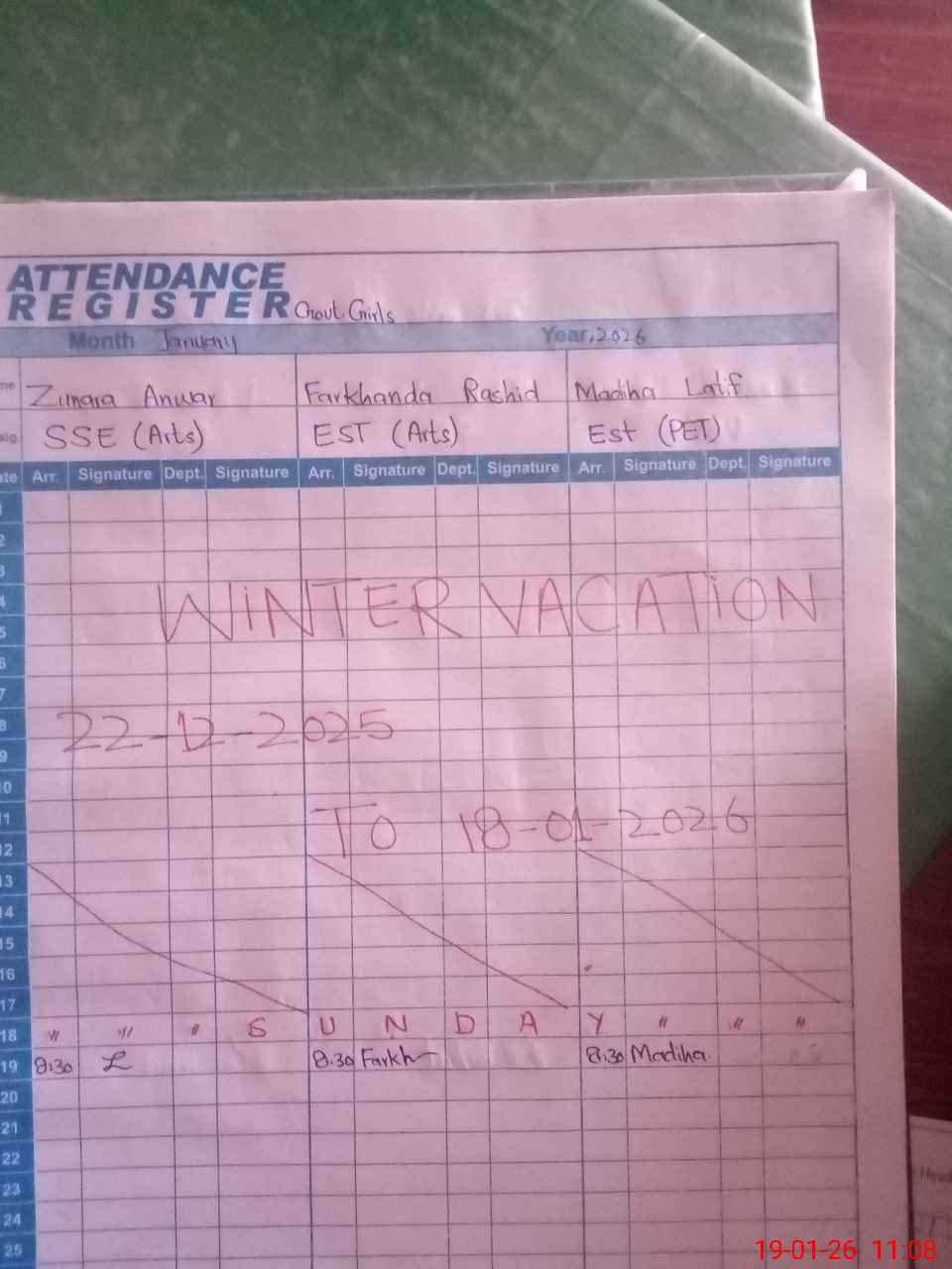 | No. of Students Present - Female | 0 | 5 | 10 | 10 | 10 | 11 | 15 | 15 | 12 | 8 | 114 | |||||
