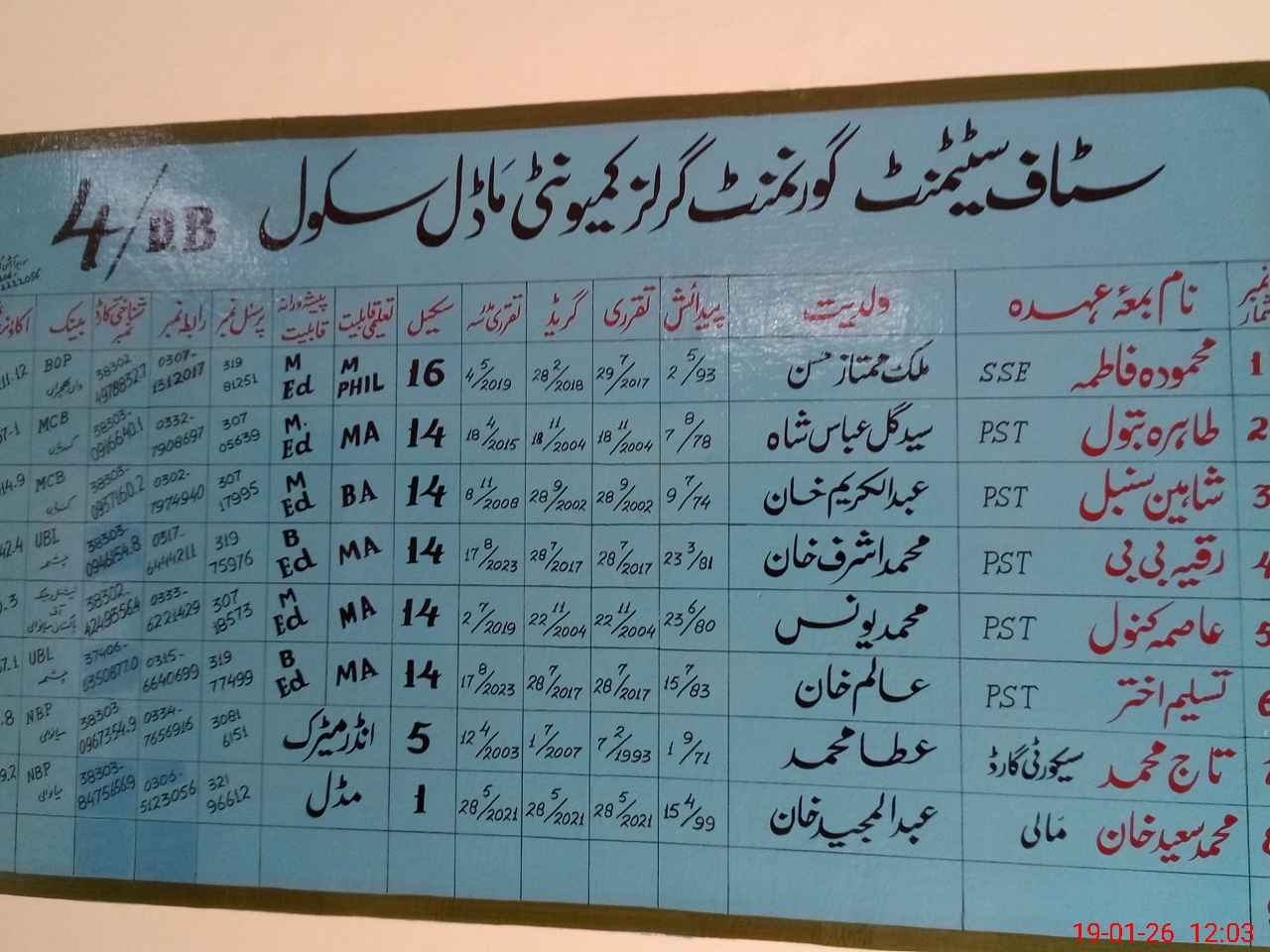 | EMIS Code: 38331081 | Name of School: GGCMS CHAK NO.4 DB | |||