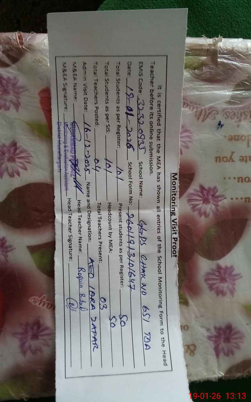 | Certified that this School was Inspected by the Undersigned MEA/DMO Today and the Information Stated Above is as Per Record. | |||||