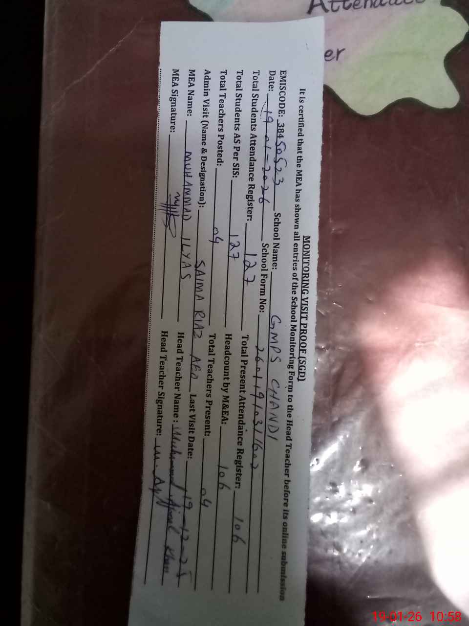 | EMIS Code: 38450523 | Name of School: GMPS CHANDI | |||