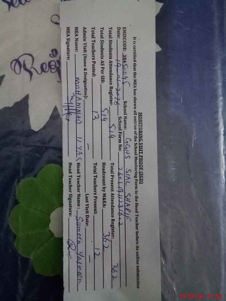 | EMIS Code: 38450045 | Name of School: GGHS SIAL SHARIF | |||