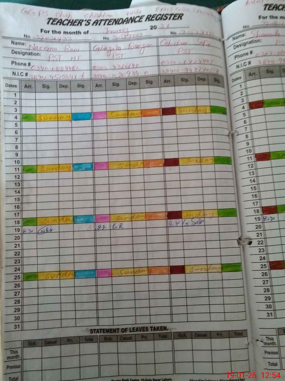 | Name: NA**** RA**** Designation: (School Headmaster's/Headmistress's) PST Phone/Cell Number: 03**** |