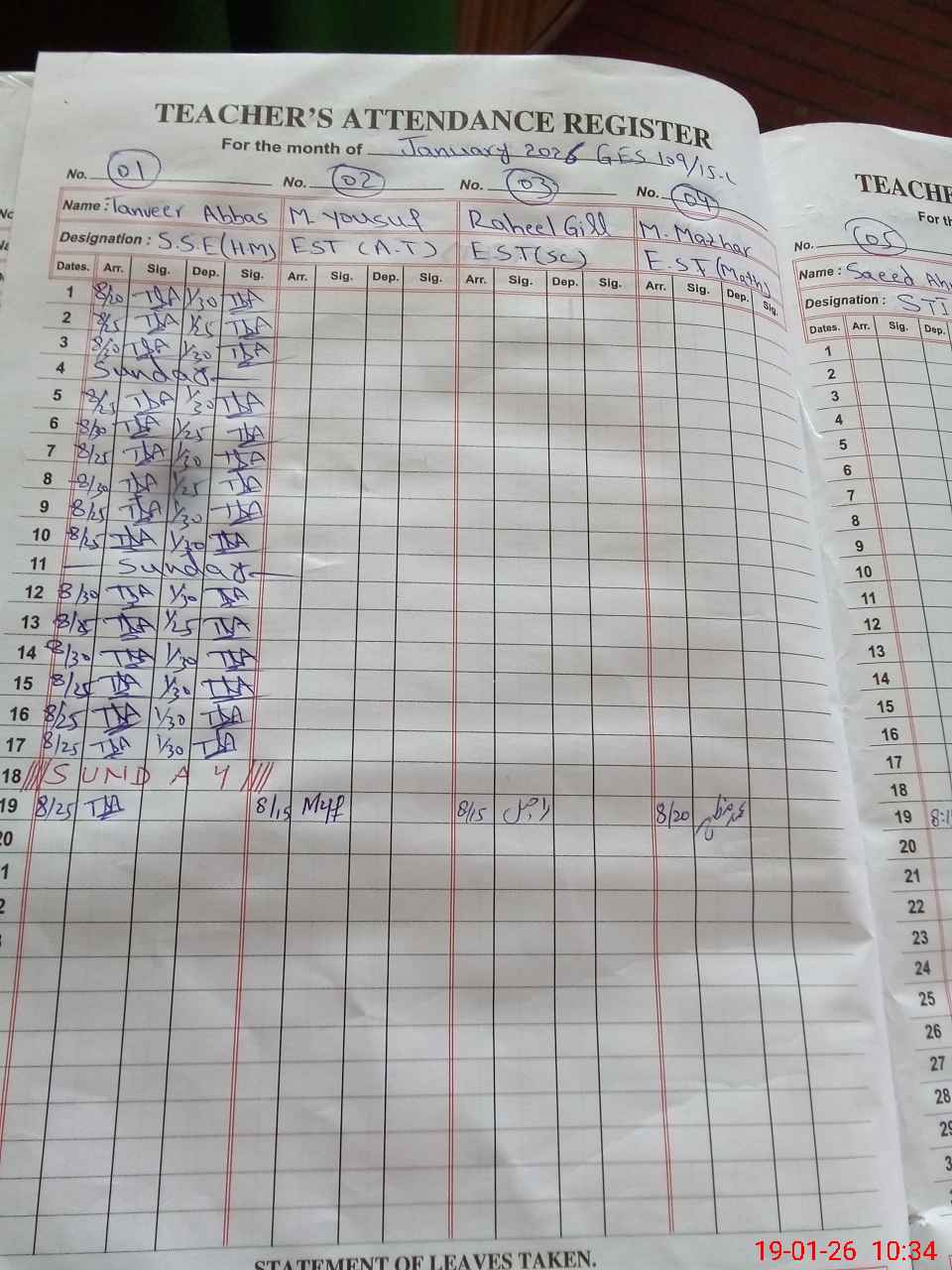 | CNIC | Full Name | Designation | R/C | Absence During Last Calender Month |