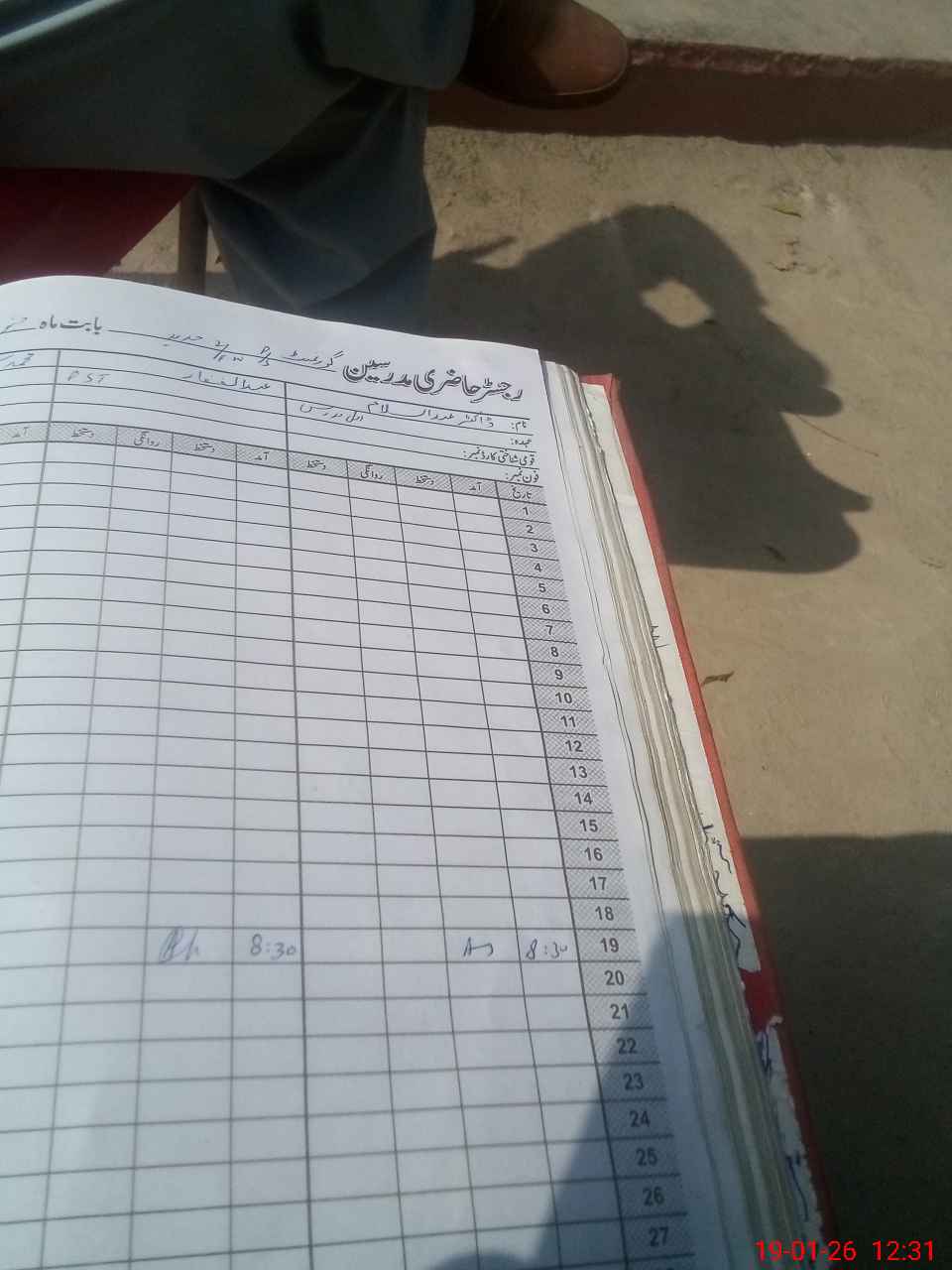| CNIC | Full Name | Designation | R/C | Absence During Last Calender Month |