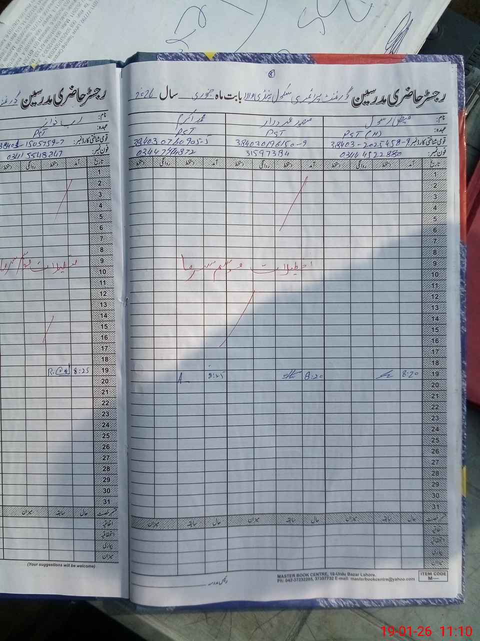 | CNIC | Full Name | Designation | R/C | Absence During Last Calender Month |