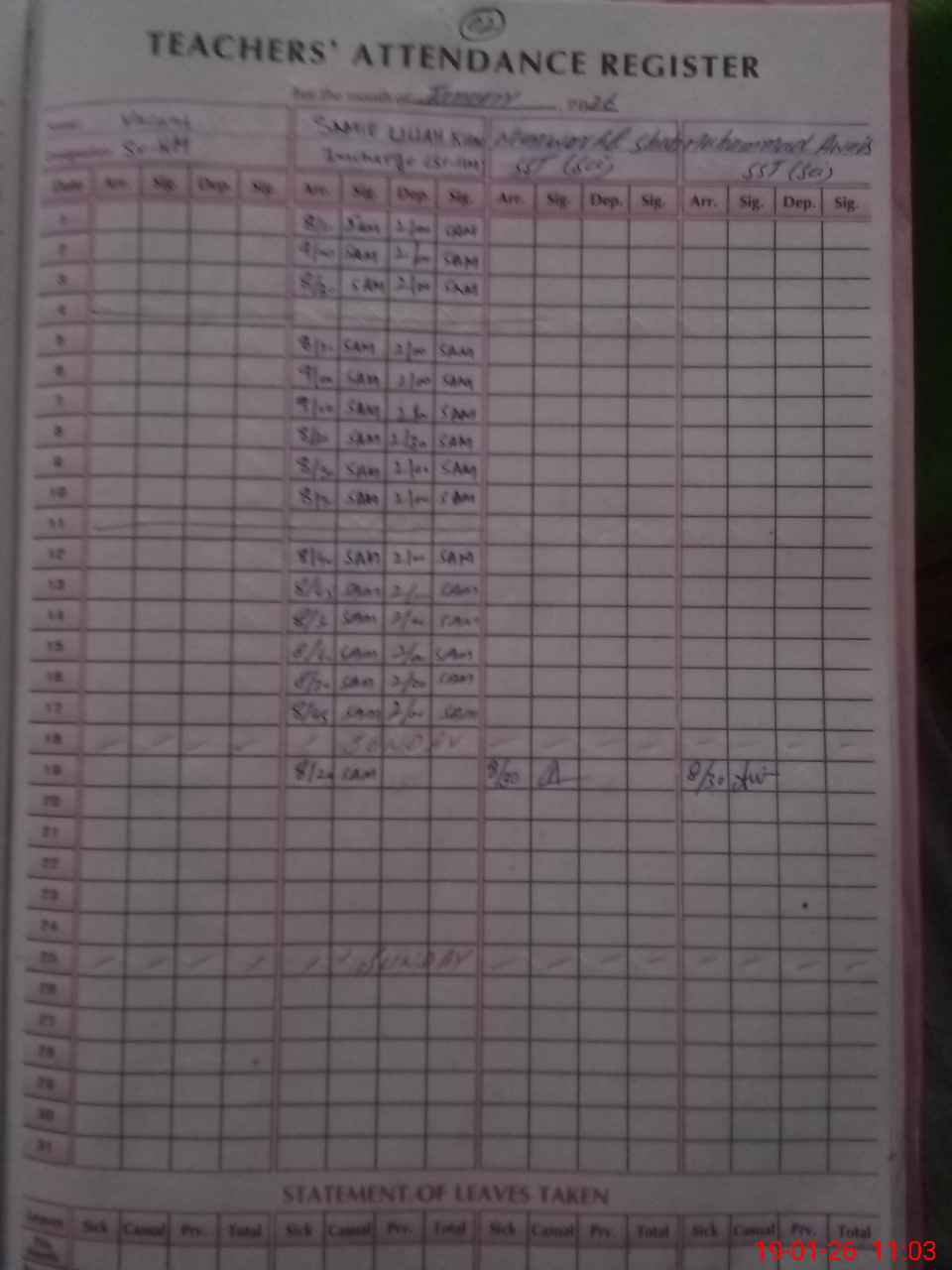 | No. of Students Present - Female | 0 | 0 | 0 | 0 | 0 | 0 | 0 | 0 | 0 | 0 | 0 | 0 | 0 | |||