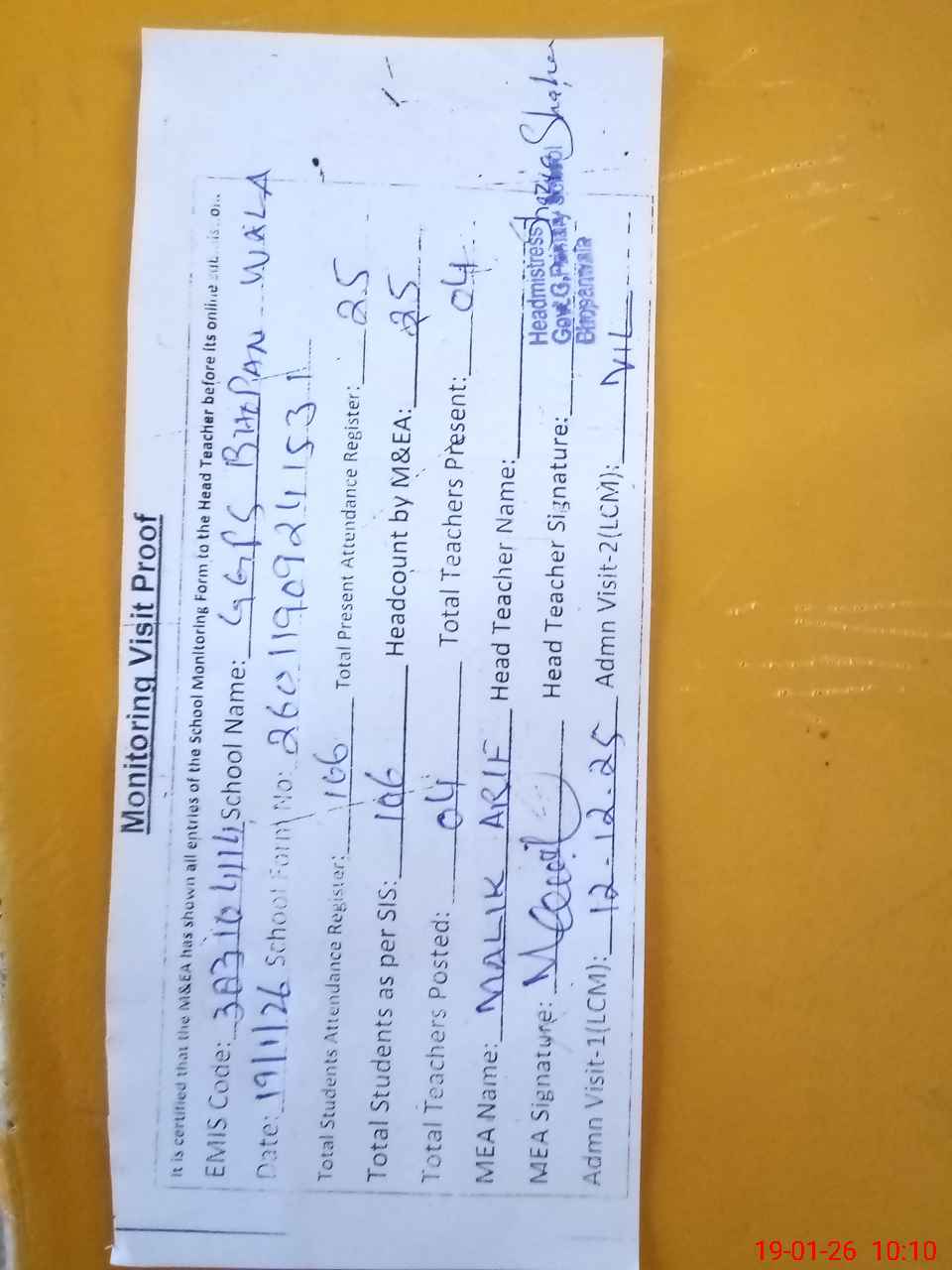 | EMIS Code: 38310414 | Name of School: GGPS BHOPAN WALA | |||