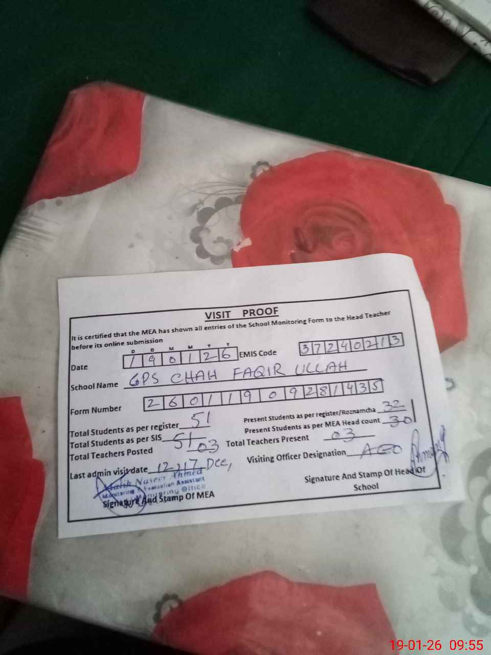 | EMIS Code: 37240213 | Name of School: GPS CHAH FAQIR ULLAHA | |||