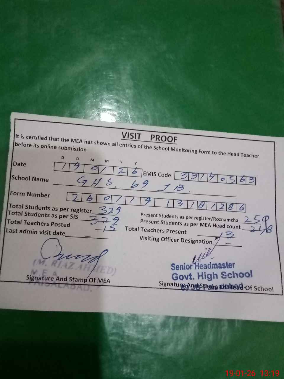 | EMIS Code: 33140563 | Name of School: GHS CHAK 69 JB FSD | |||