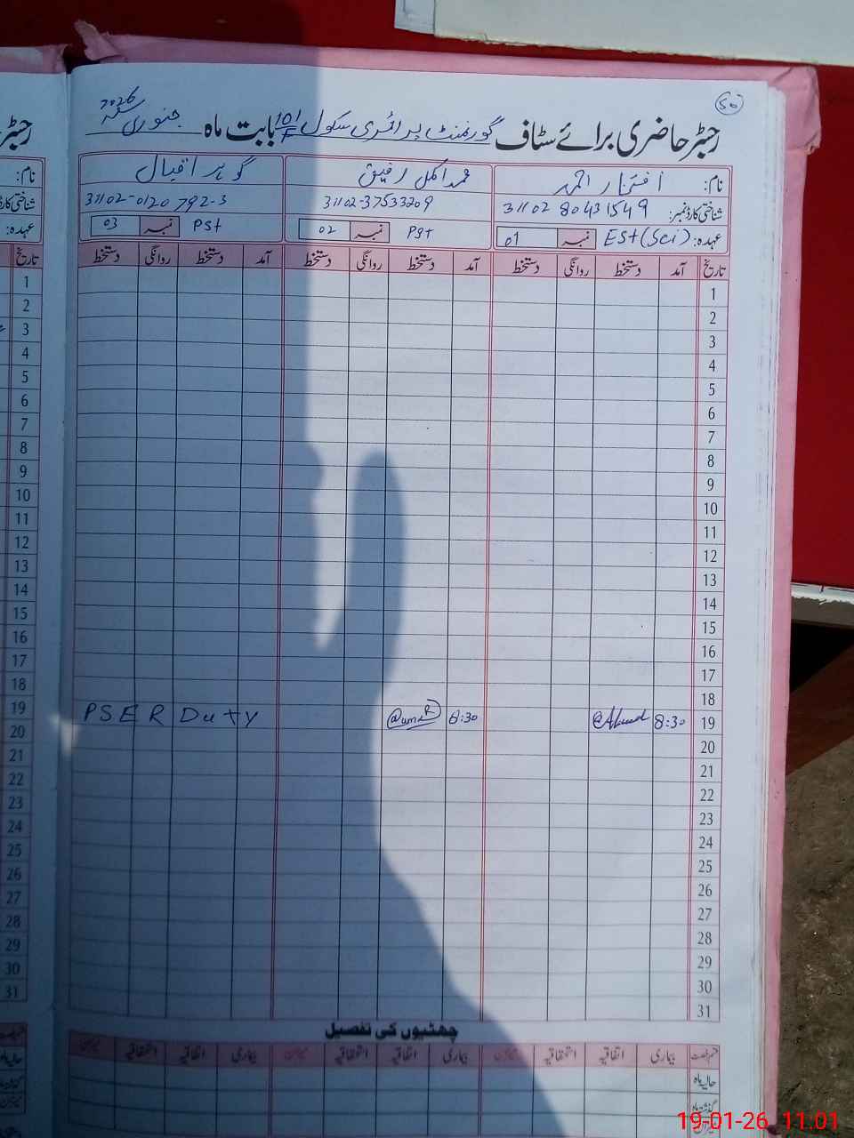 | CNIC | Full Name | Designation | R/C | Absence during last cal. month |