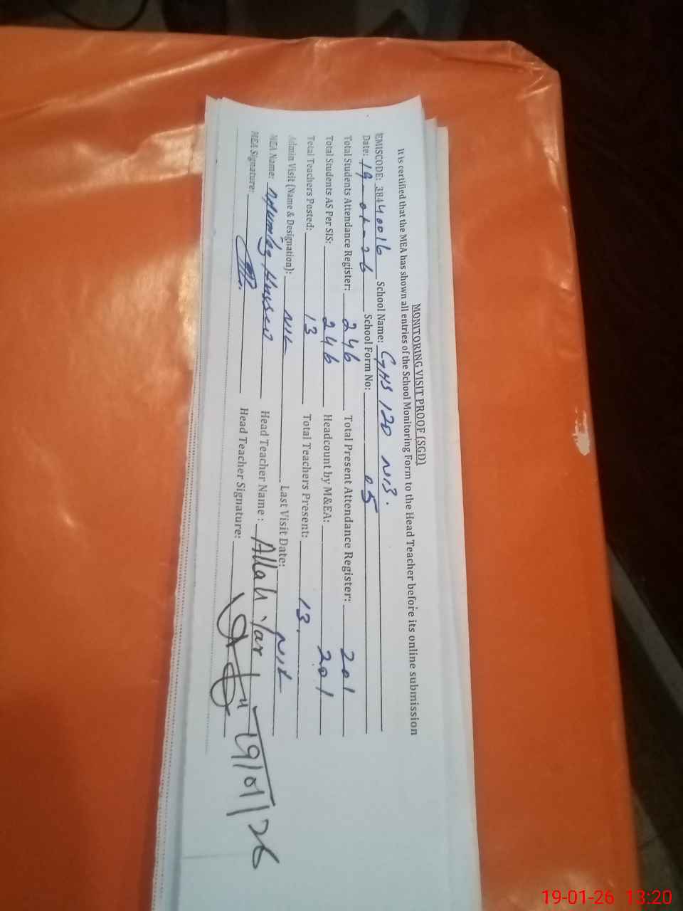 | EMIS Code: 38440016 | Name of School: GHS CHAK NO.120 NB | |||