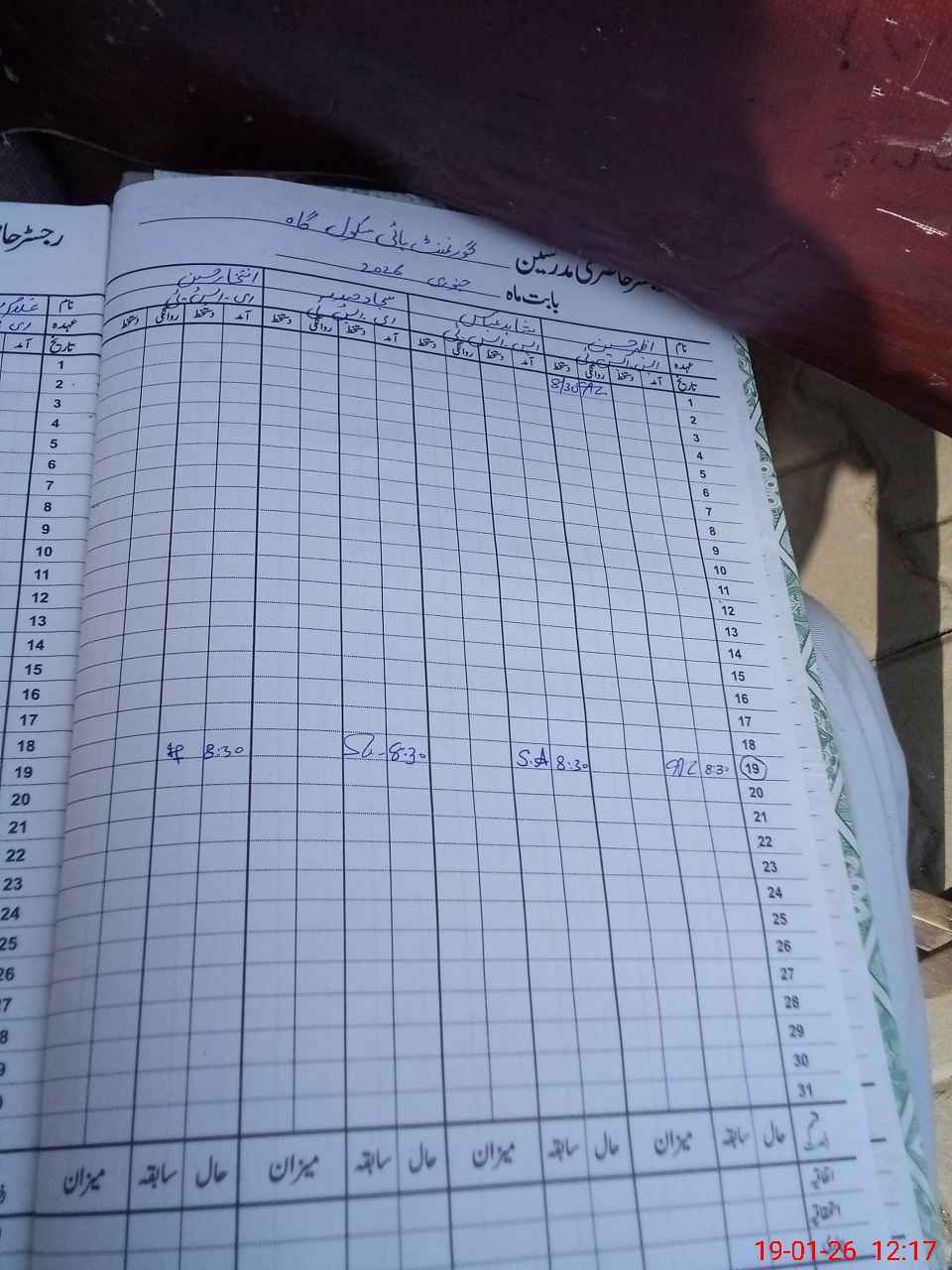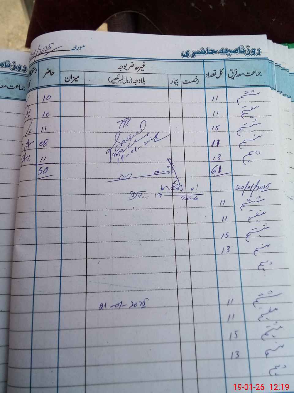 | CNIC | Full Name | Designation | R/C | Absence During Last Calender Month |
