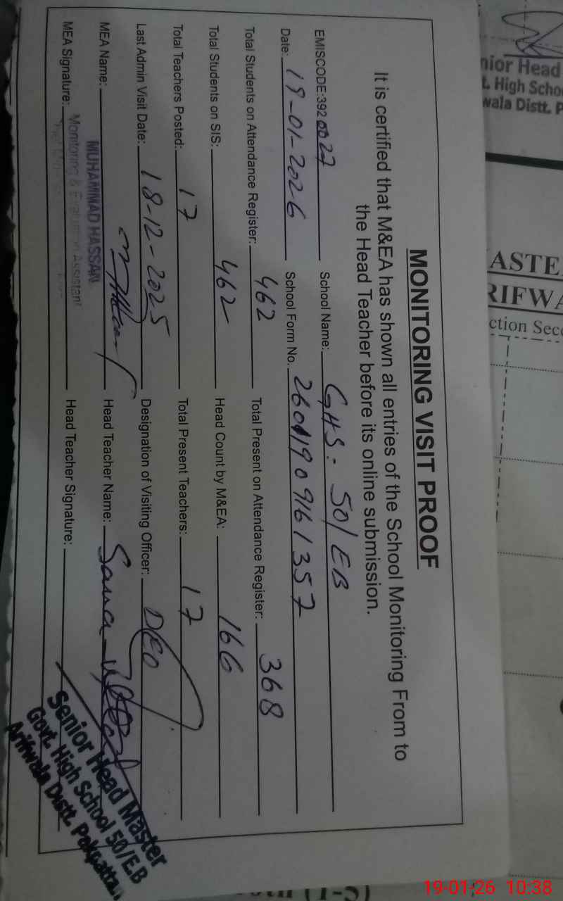 | EMIS Code: 39220027 | Name of School: GHS 50/EB | |||