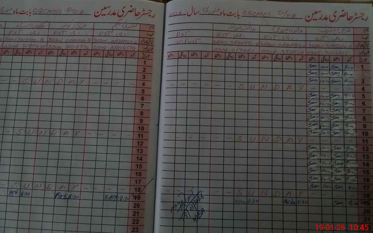 | Name: SA**** AS**** Designation: (School Headmaster's/Headmistress's) SST (GENERAL) Phone/Cell Number: 03**** |