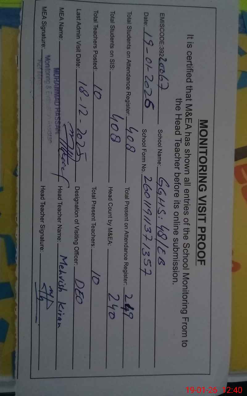 | EMIS Code: 39220067 | Name of School: GGHS 48 EB | |||