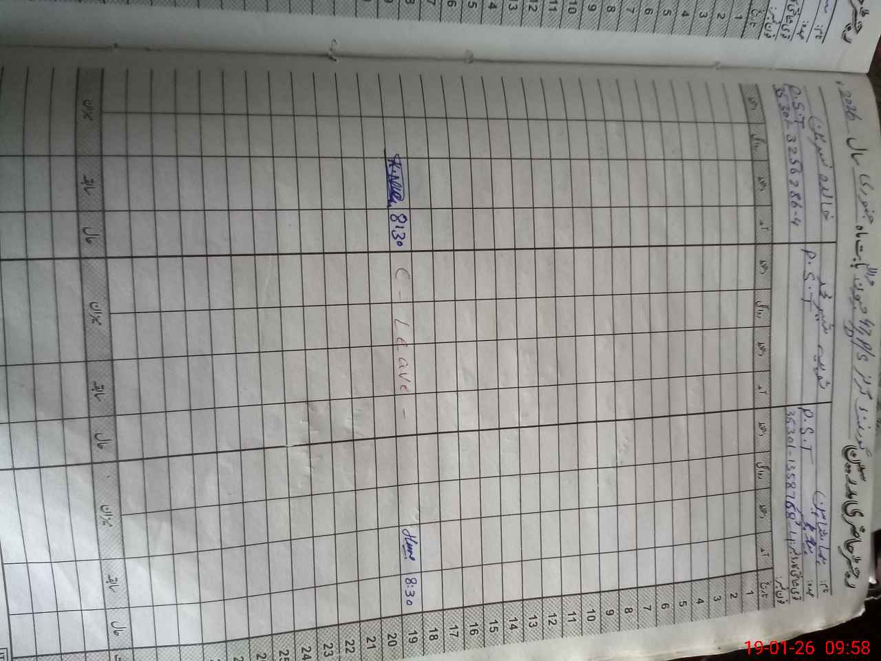 | CNIC | Full Name | Designation | R/C | Absence during last cal. month |