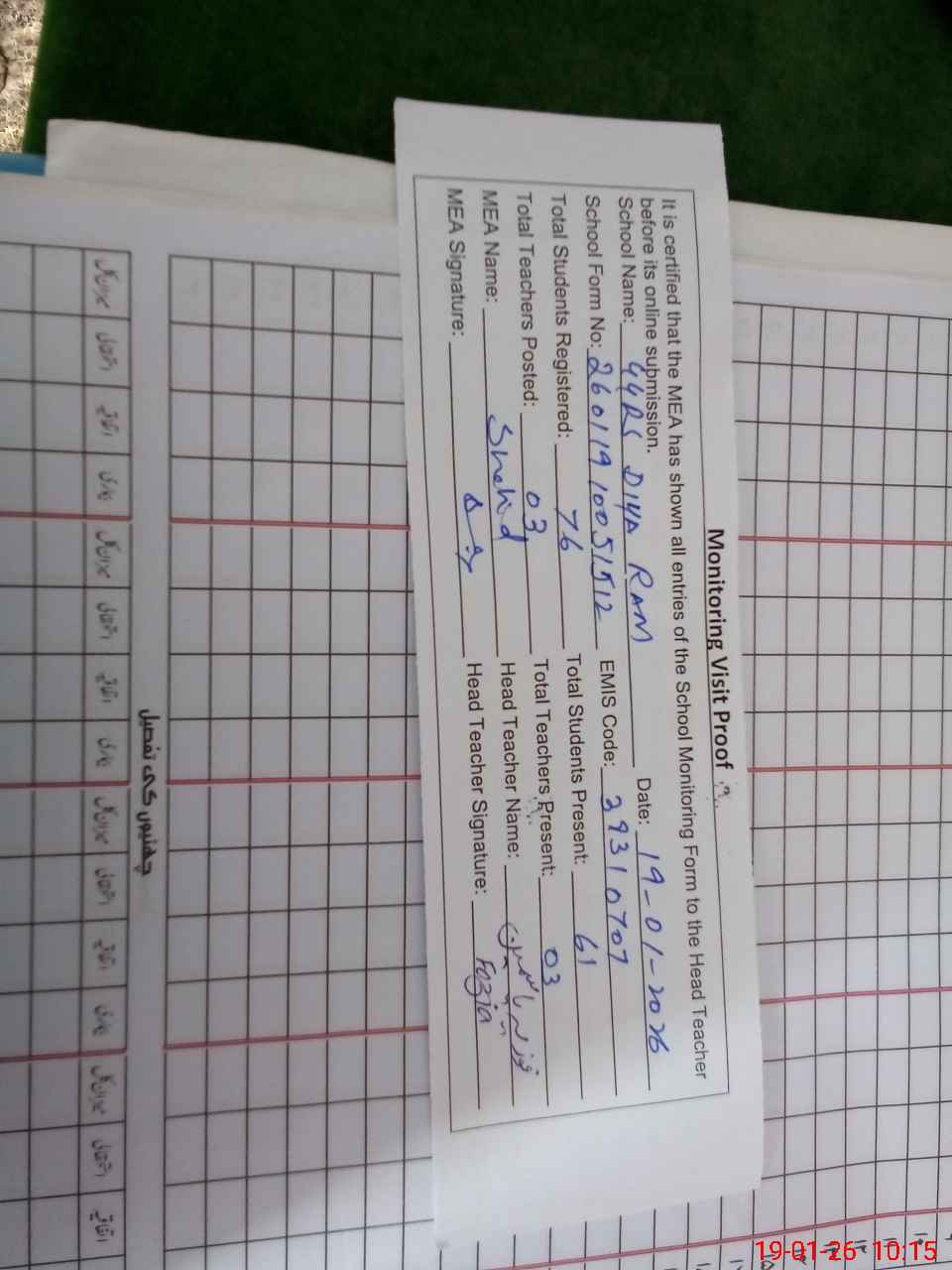 | Certified that this School was Inspected by the Undersigned MEA/DMO Today and the Information Stated Above is as Per Record. | |||||