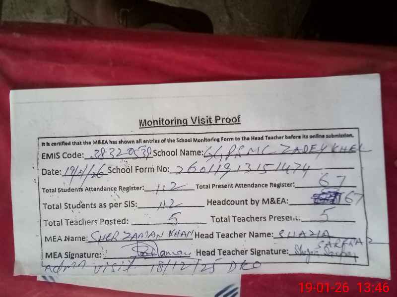 | EMIS Code: 38320539 | Name of School: GGPS MC ZADEY KHEL | |||