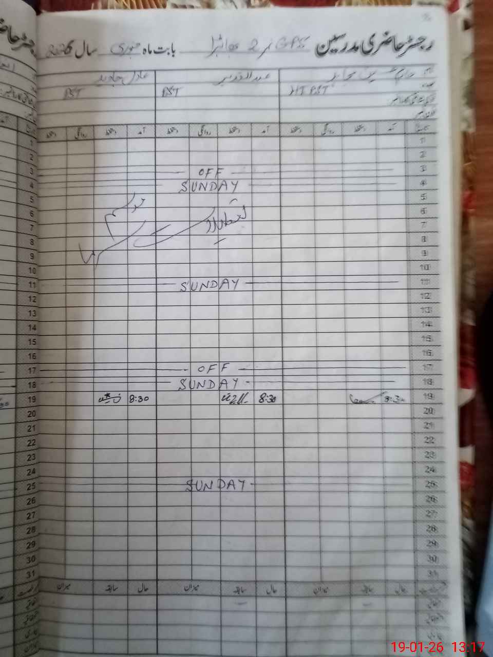 | CNIC | Full Name | Designation | R/C | Absence during last cal. month |