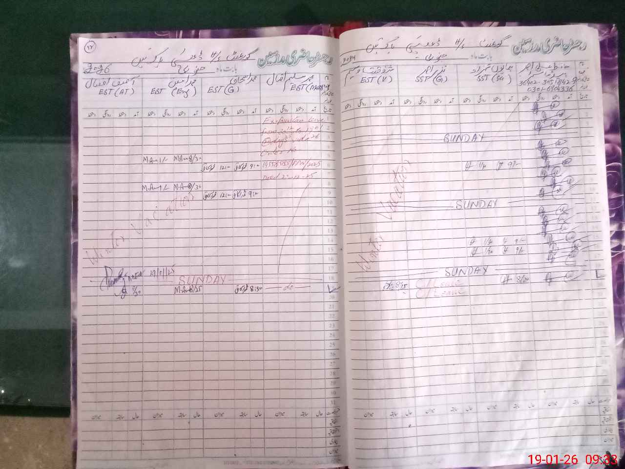| CNIC | Full Name | Designation | R/C | Absence During Last Calender Month |