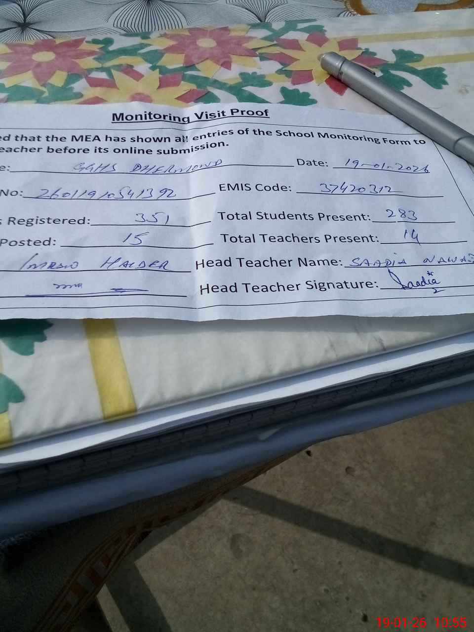 | EMIS Code: 37420312 | Name of School: GGHS DHERMOND | |||