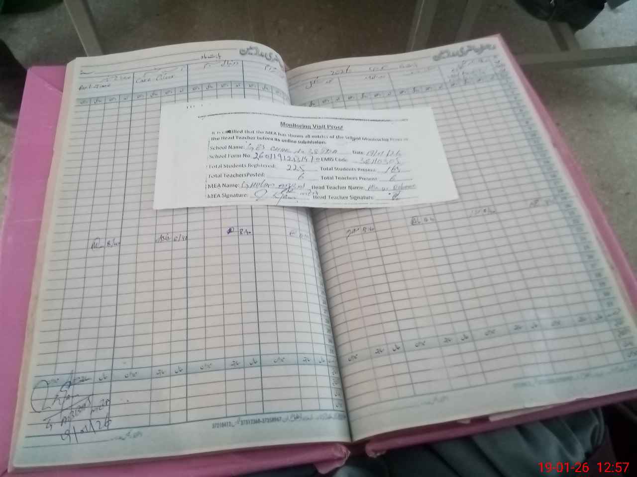 | Attendance Register | Head Teacher | MEA with School | Visit Proof |